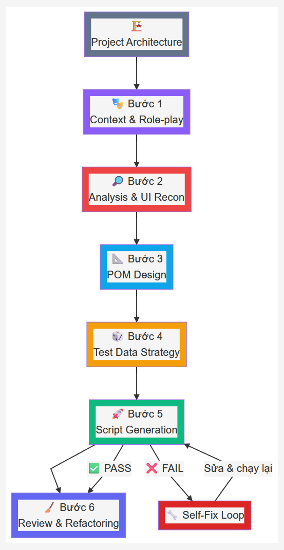 | 1 | DOM Recon First | AI tự mở browser, inspect DOM thật. TUYỆT ĐỐI không đoán locator |