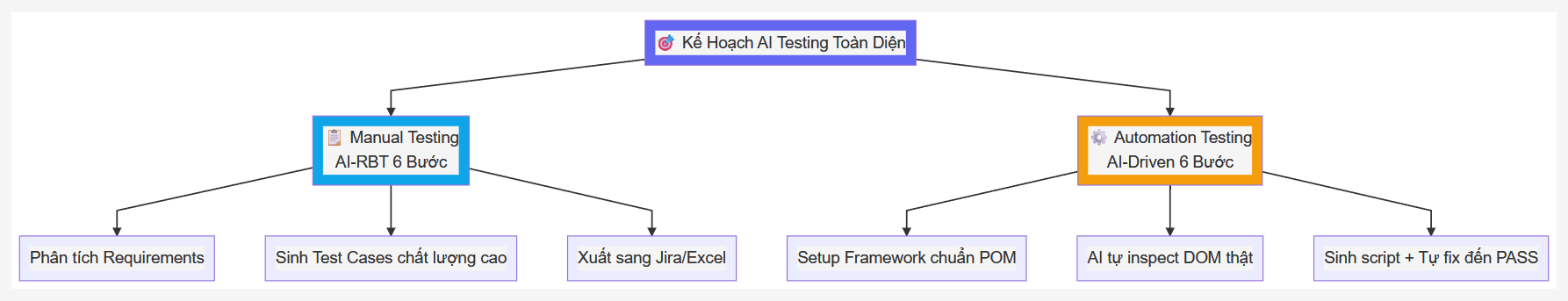 Kế hoạch AI Testing toàn diện cần bao phủ cả hai mảng kiểm thử Manual và Automation.