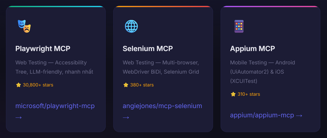| Tiêu chí | Playwright MCP | Selenium MCP | Appium MCP |