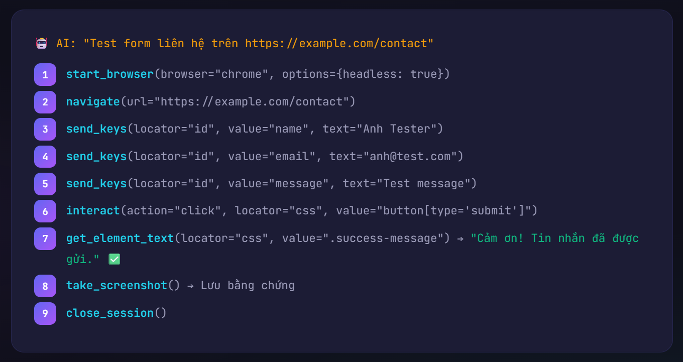 | AI đoán locator dựa trên mô tả | AI tự mở browser, đọc DOM thật |