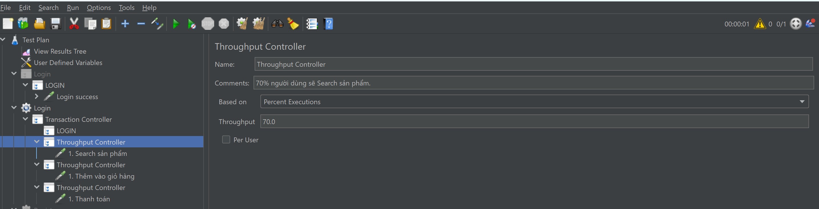 Định nghĩa: Thread Group → Add → Logic Controller → Throughput Controller